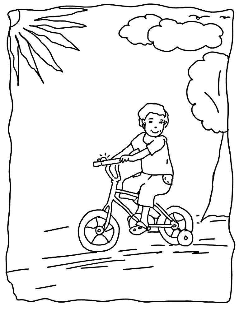 Мальчик на велосипеде раскраска