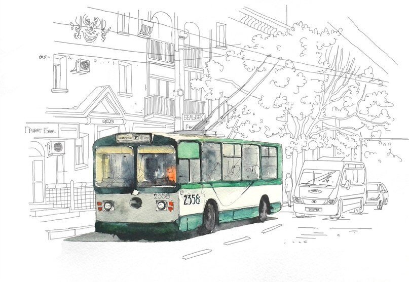 ![Зарисовки городского транспорта]()