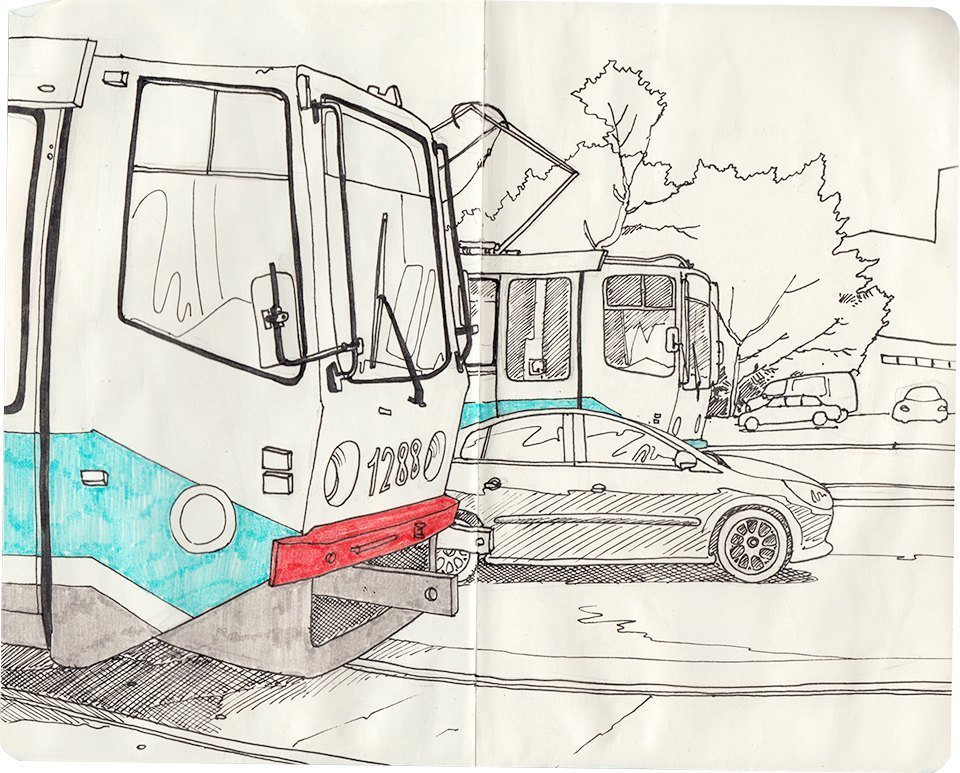 ![Трамвай зарисовка]()