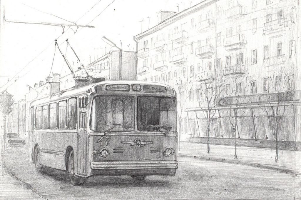 Трамвай рисунок карандашом