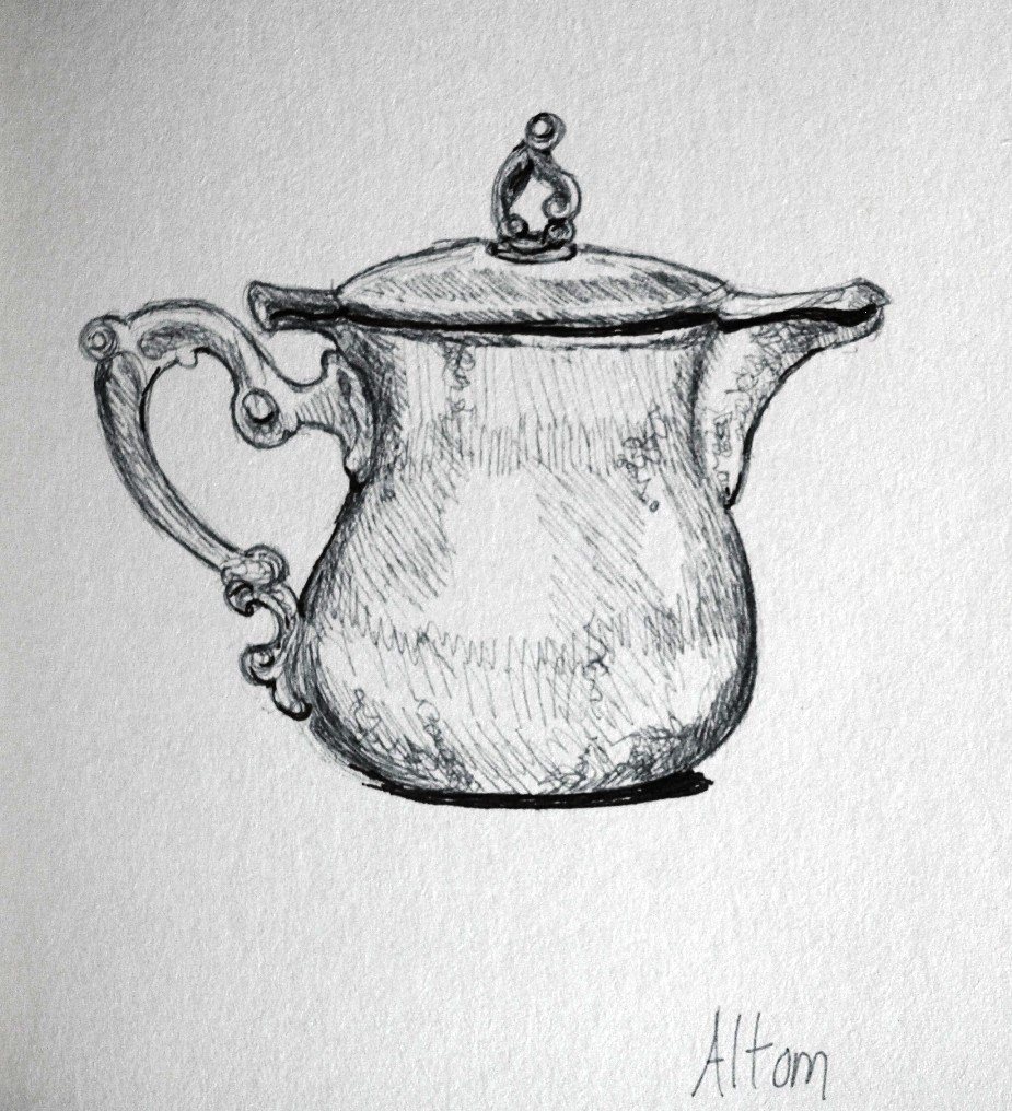 ![Набросок чайника карандашом]()