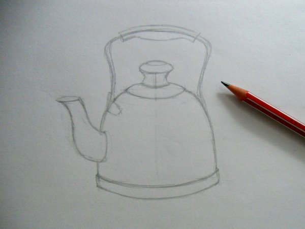 ![Металлический чайник карандашом]()