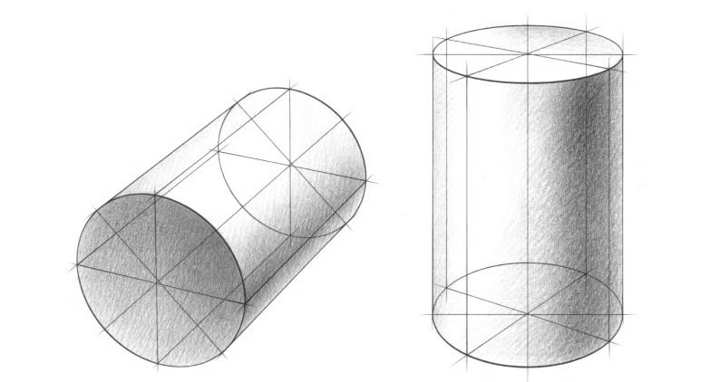 Поэтапное рисование цилиндра