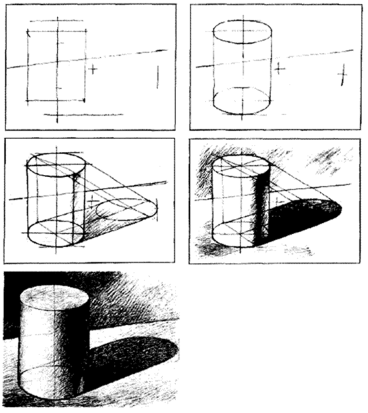 ![Этапы рисования цилиндра]()