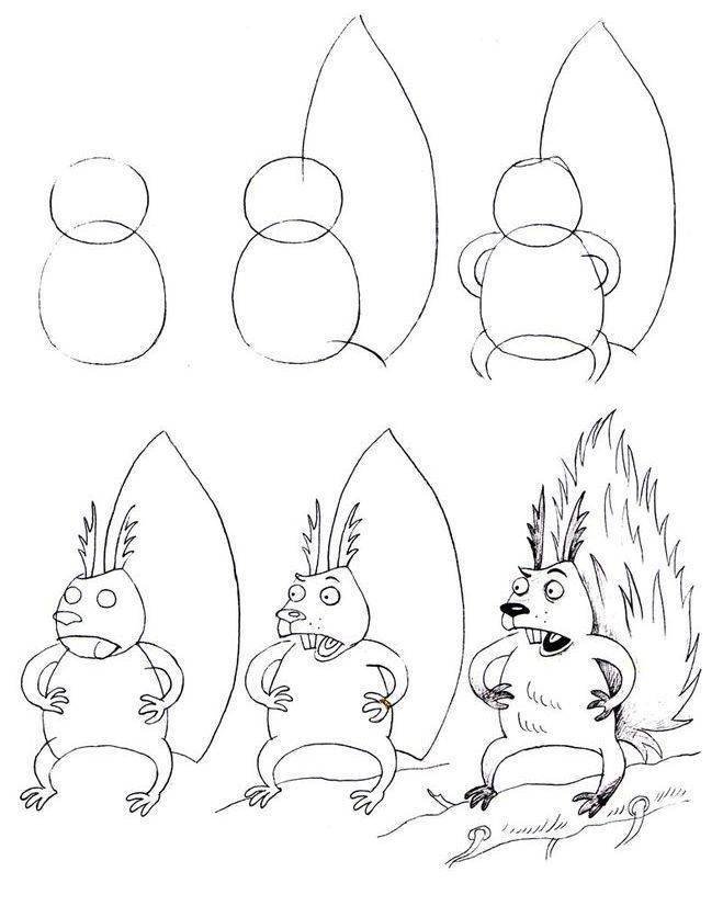 ![Как нарисовать белку поэтапно]()