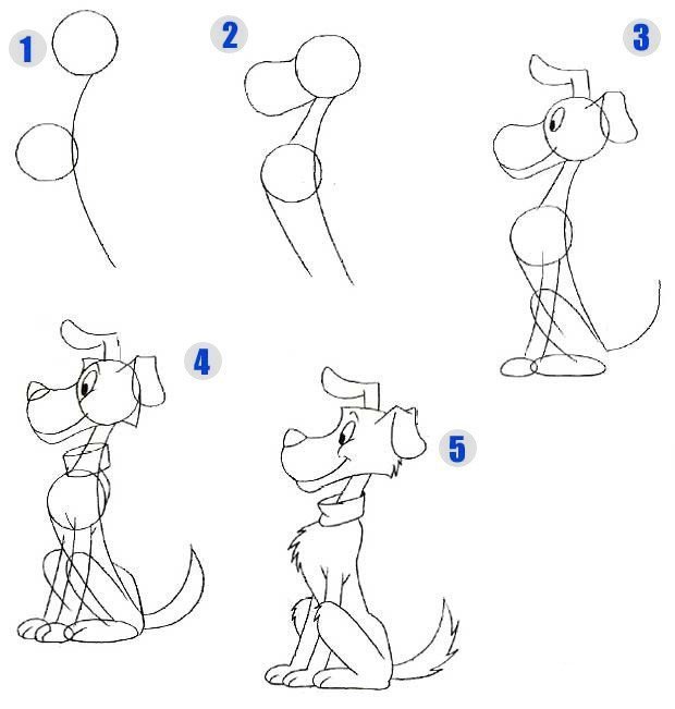 Поэтапное рисование собаки для дошкольников
