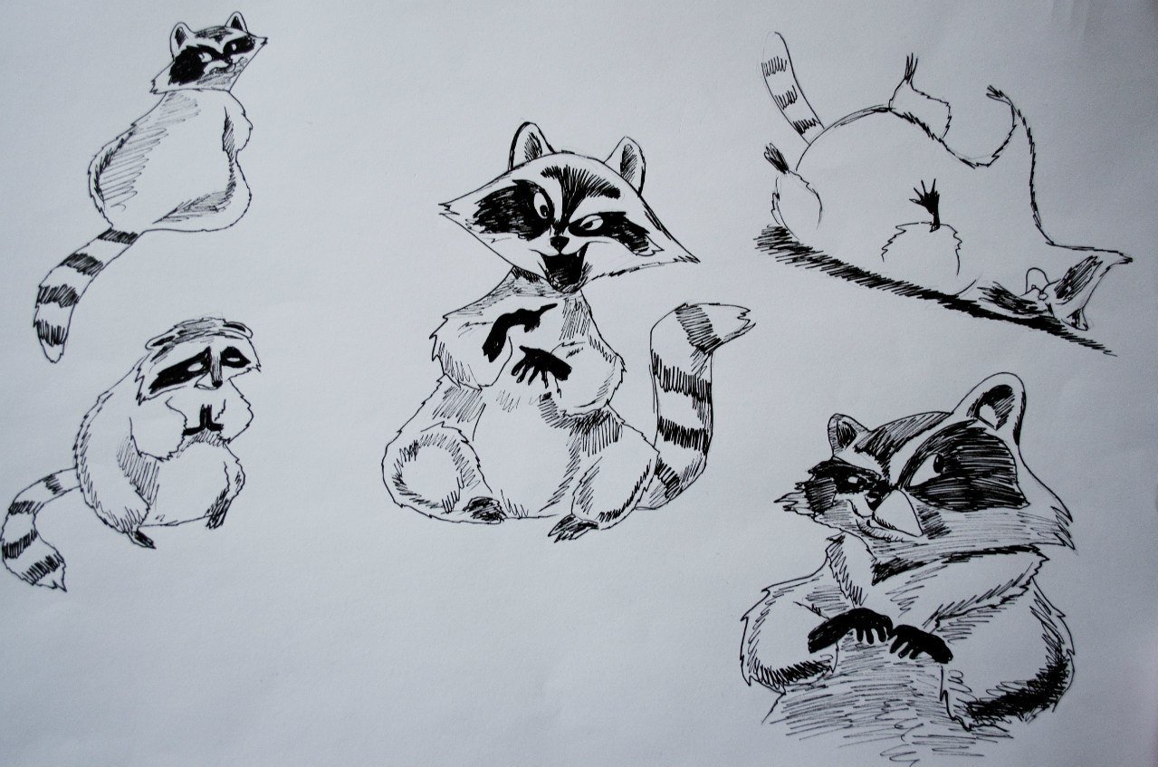 ![Зарисовки енота]()