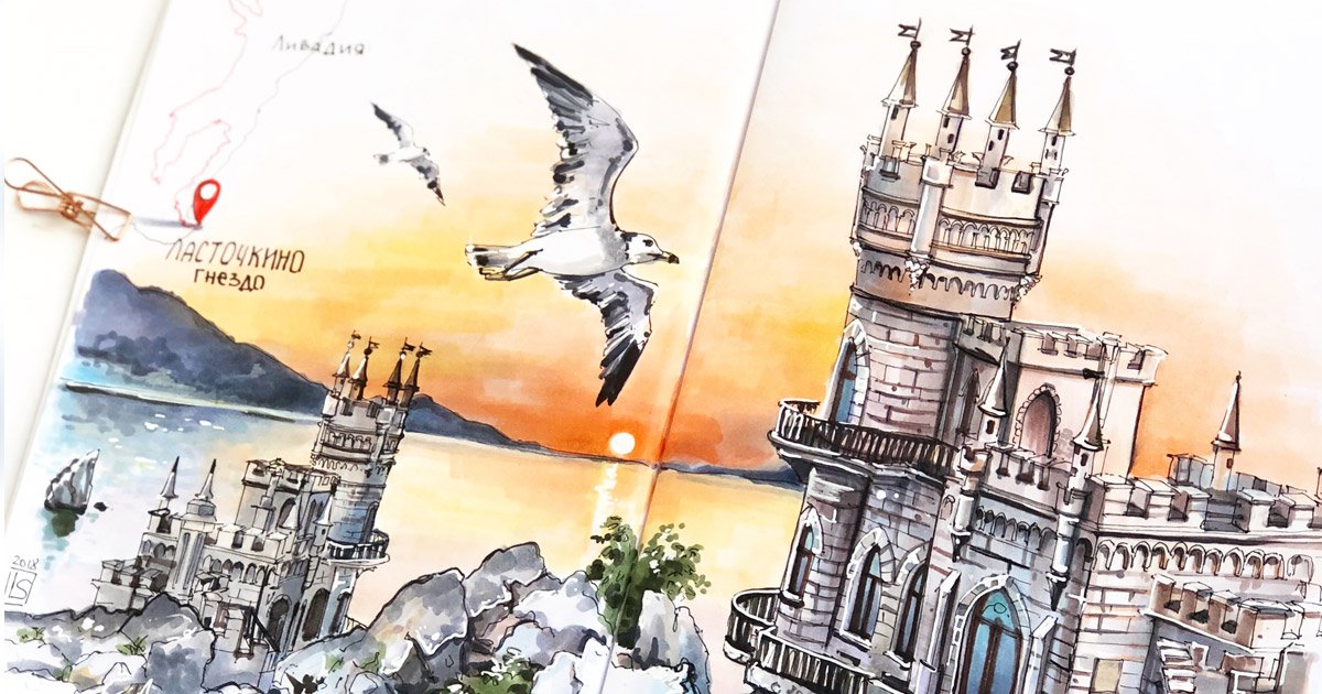 ![Ласточкино гнездо в Крыму раскраска для детей]()
