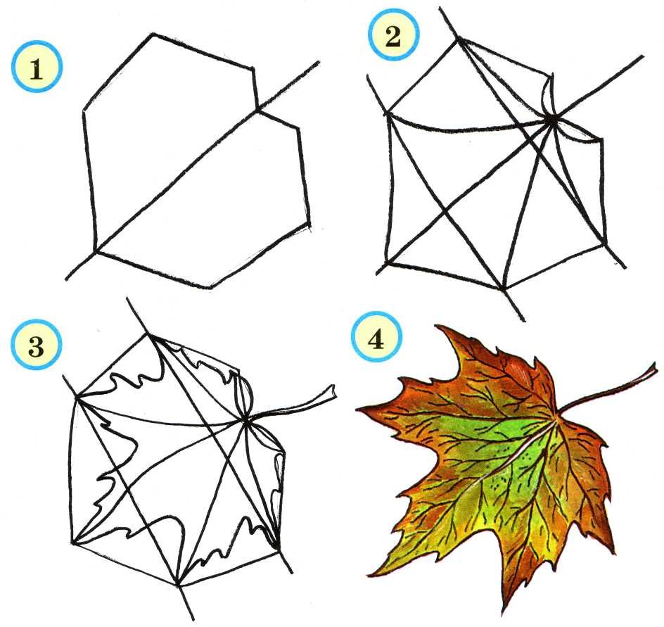 Лист клена поэтапное рисование