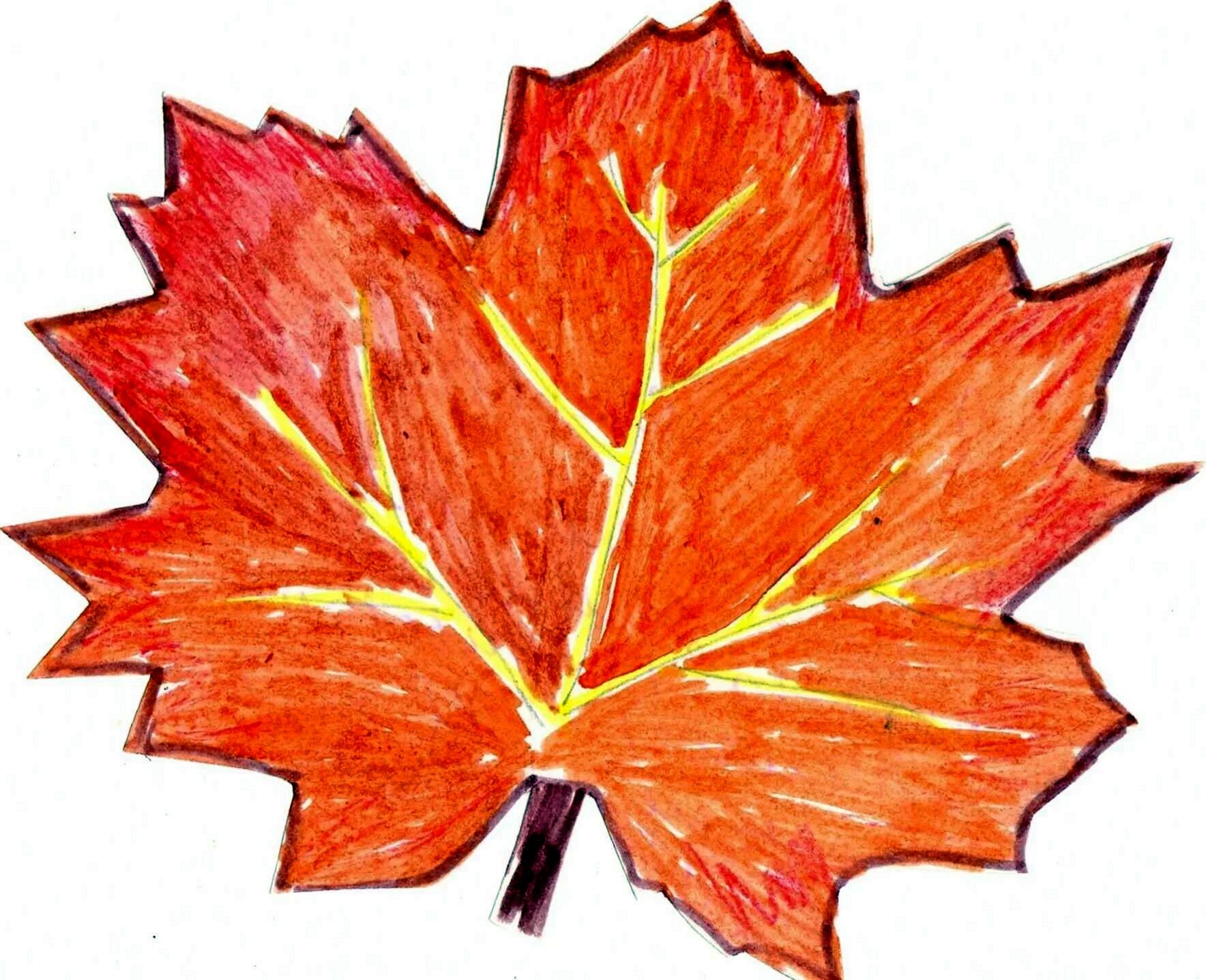 Рисование кленового листа карандашами