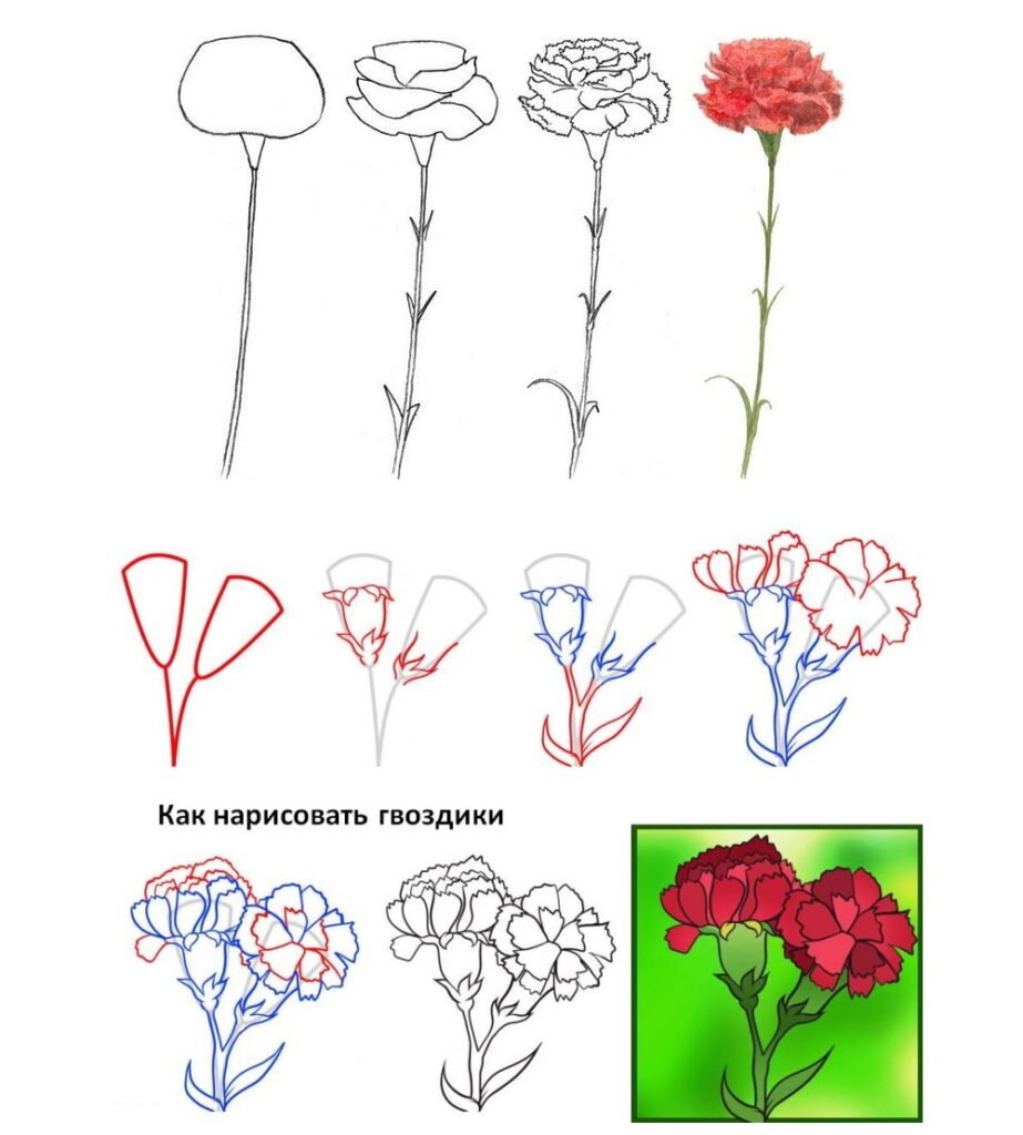 Поэтапное рисование гвоздики