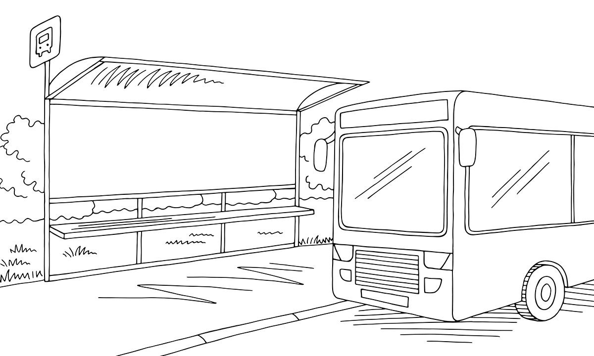 Раскраска автобусная остановка