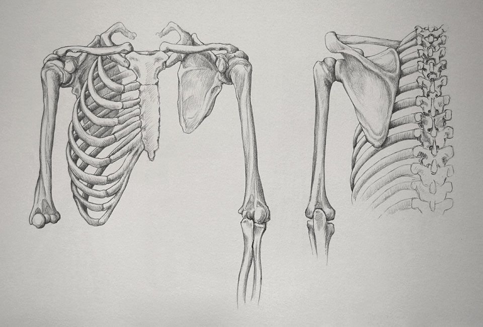 Скелет грудной клетки карандашом анатомия