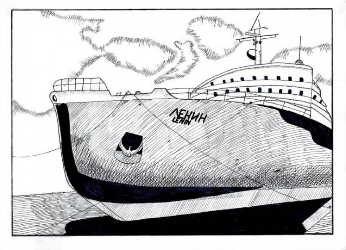 ![Атомный ледокол Ленин рисунок]()