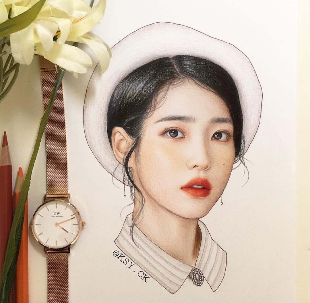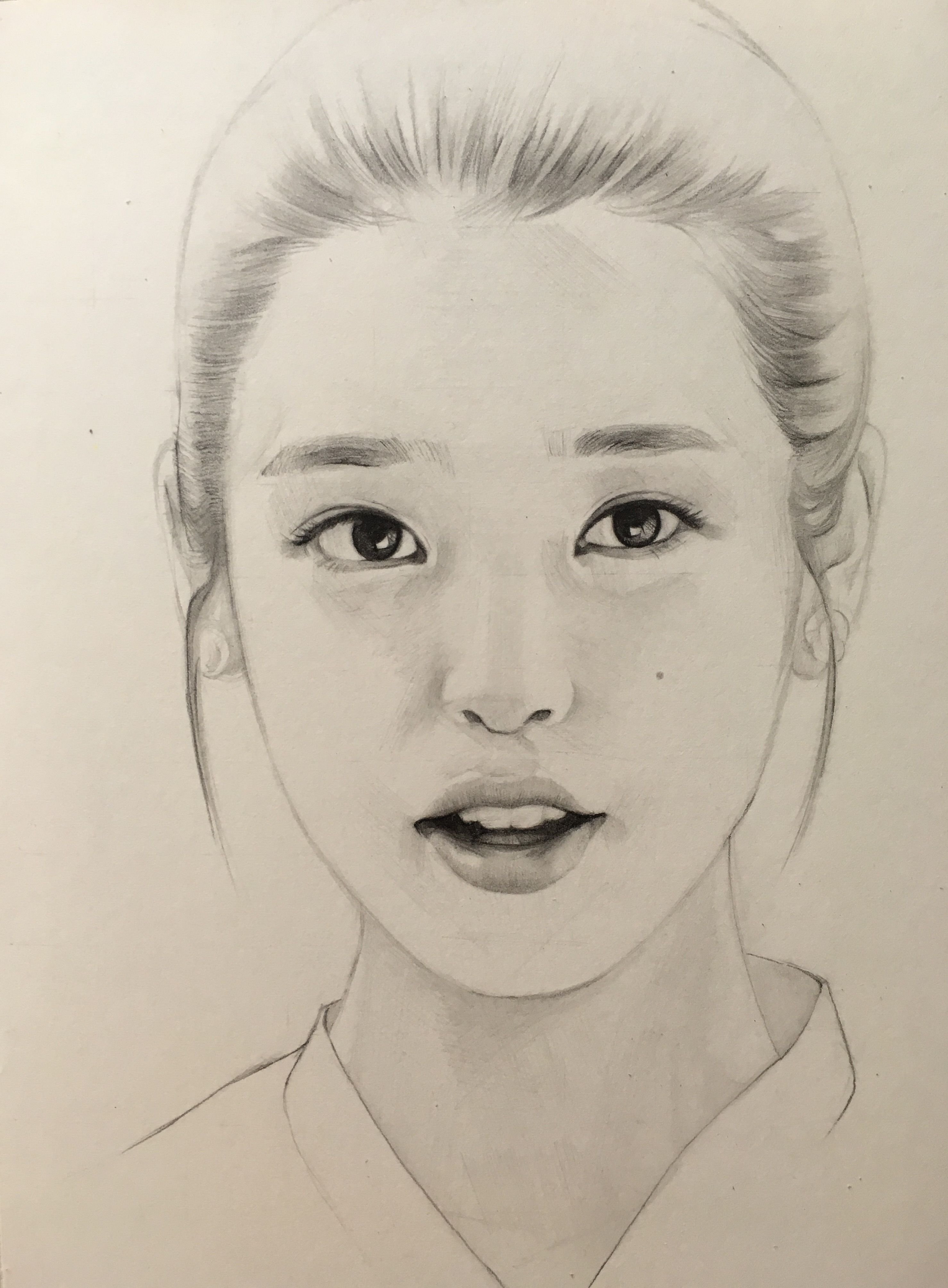 ![Портрет кореянки карандашом IU]()
