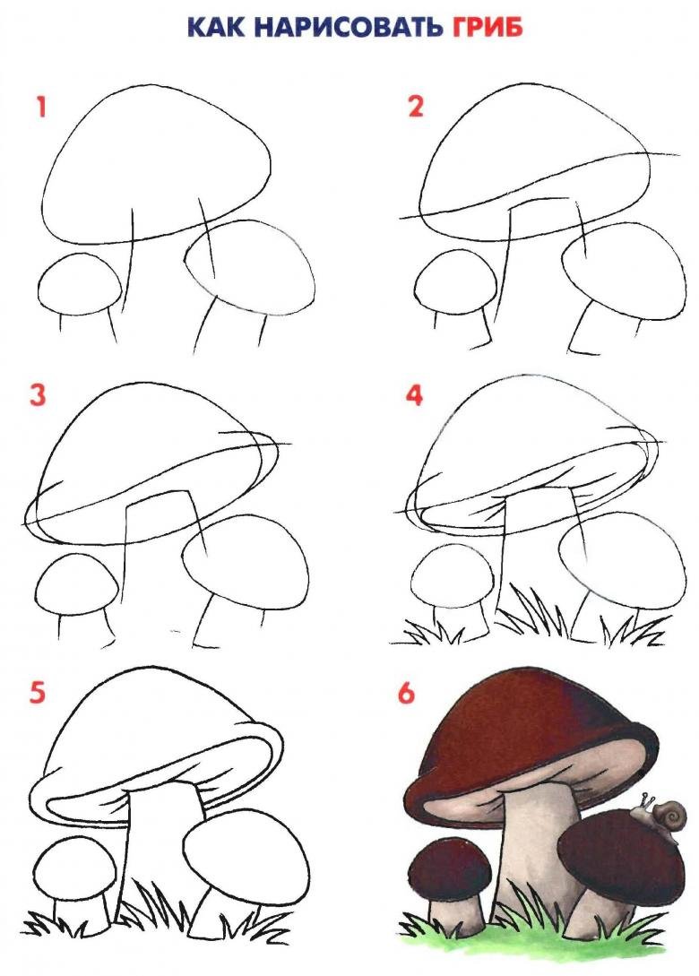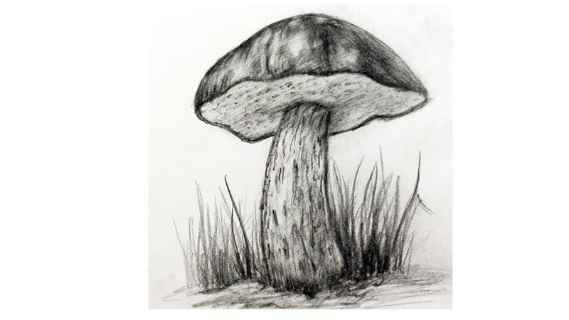 ![Рисунок гриба для детей карандашом подберёзовик]()