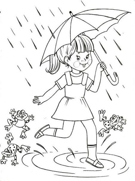 ![Девочка под зонтом раскраска]()