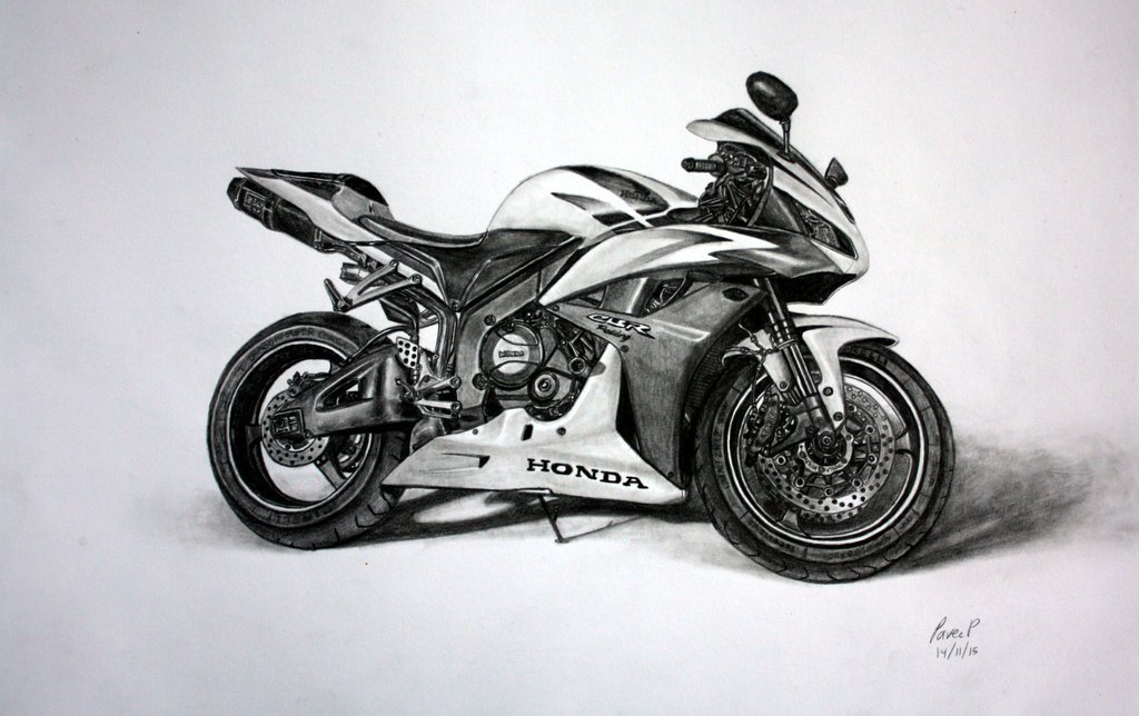 ![Скетчи мотоциклов карандашом]()