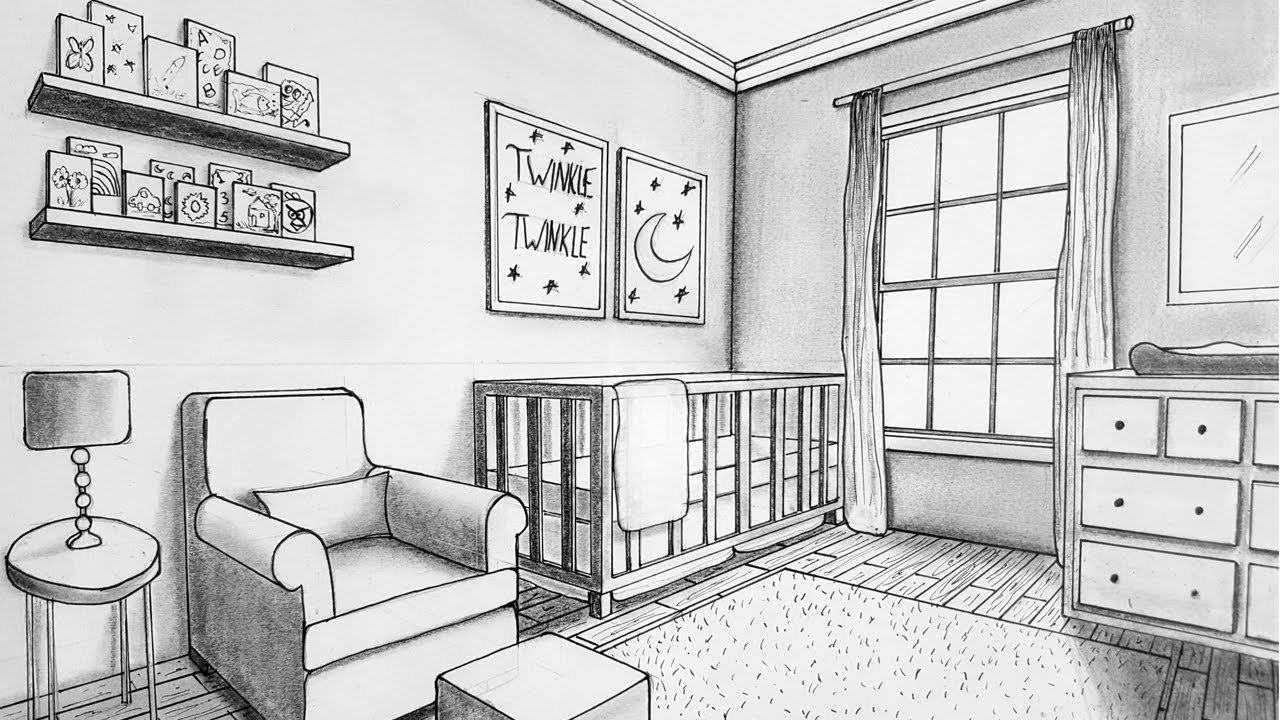 ![Рисование интерьера комнаты]()