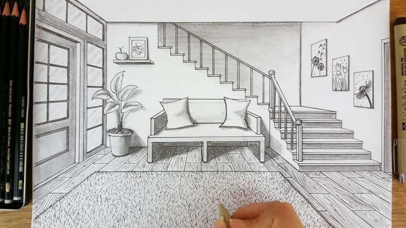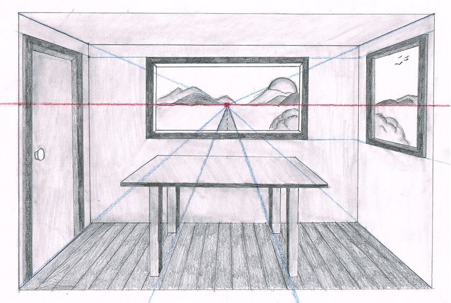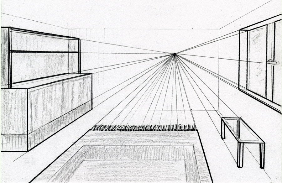 Комната в перспективе карандашом