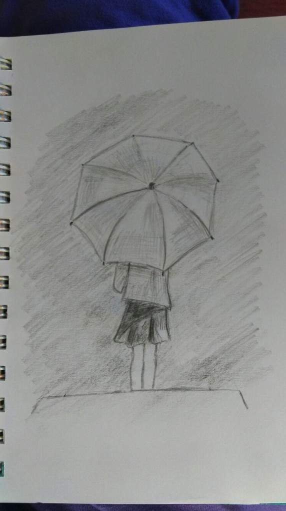 ![Человек под зонтом рисунок карандашом]()
