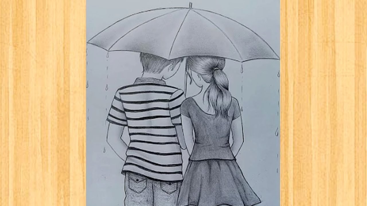 ![Пара под зонтом карандашом]()