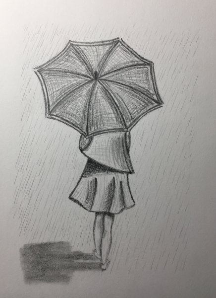 ![Девушка под зонтом рисунок карандашом]()