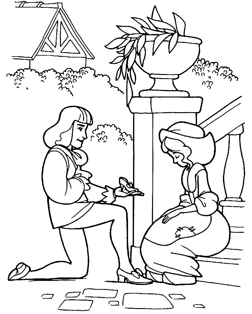Раскраска принцесса Золушка и принц