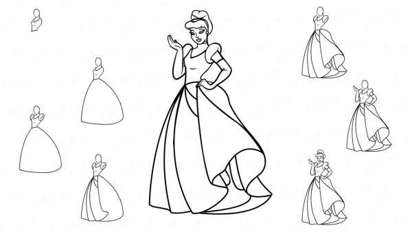 Поэтапное рисование Золушки