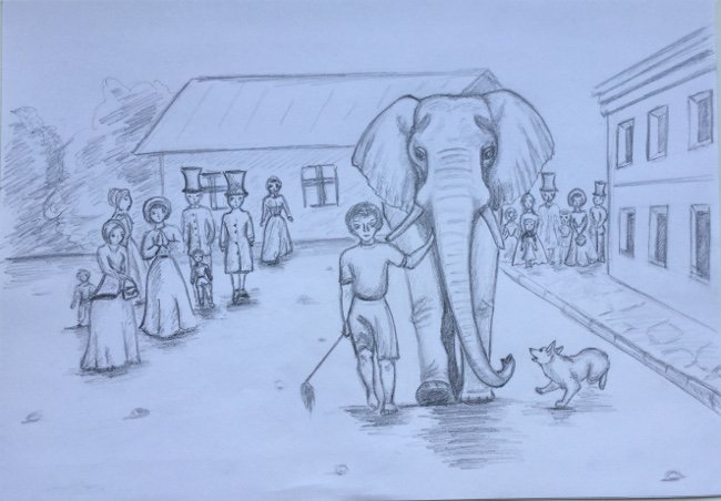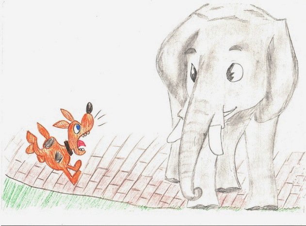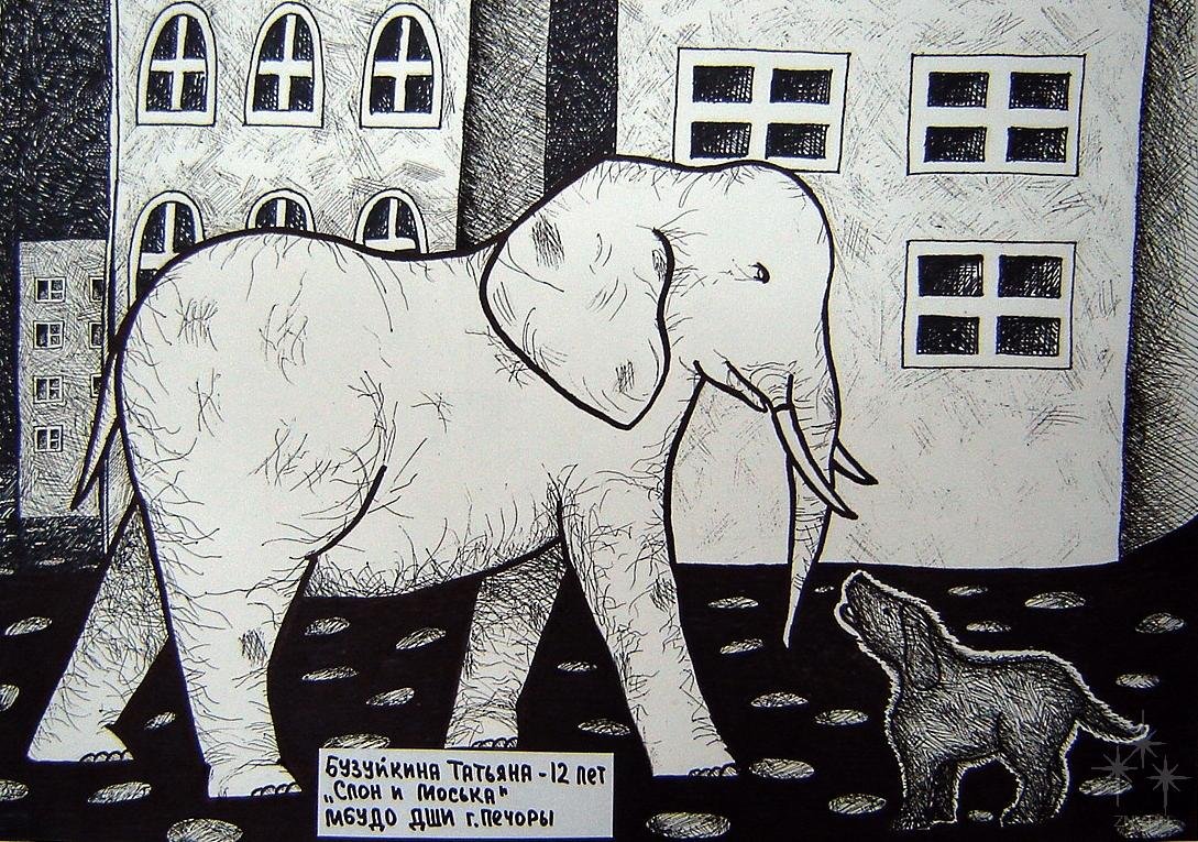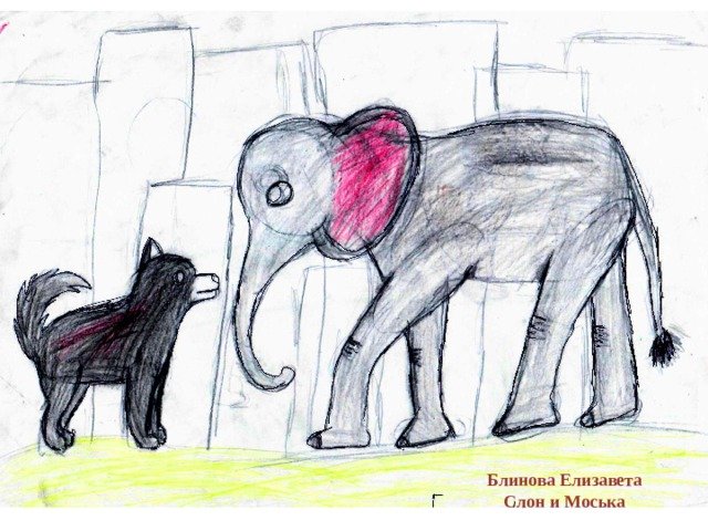 ![Слон и моська рисунок]()