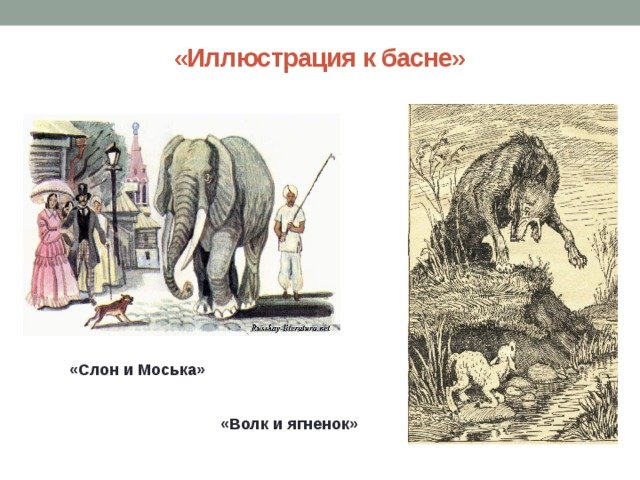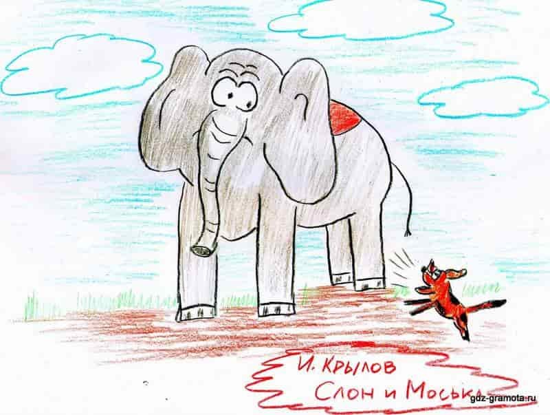 ![Иллюстрация к басне Крылова слон и моська]()