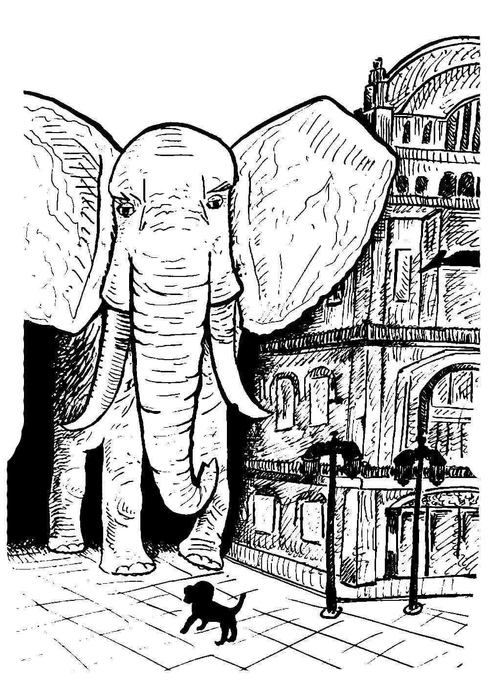 Раскраска слон и моська басня Крылова