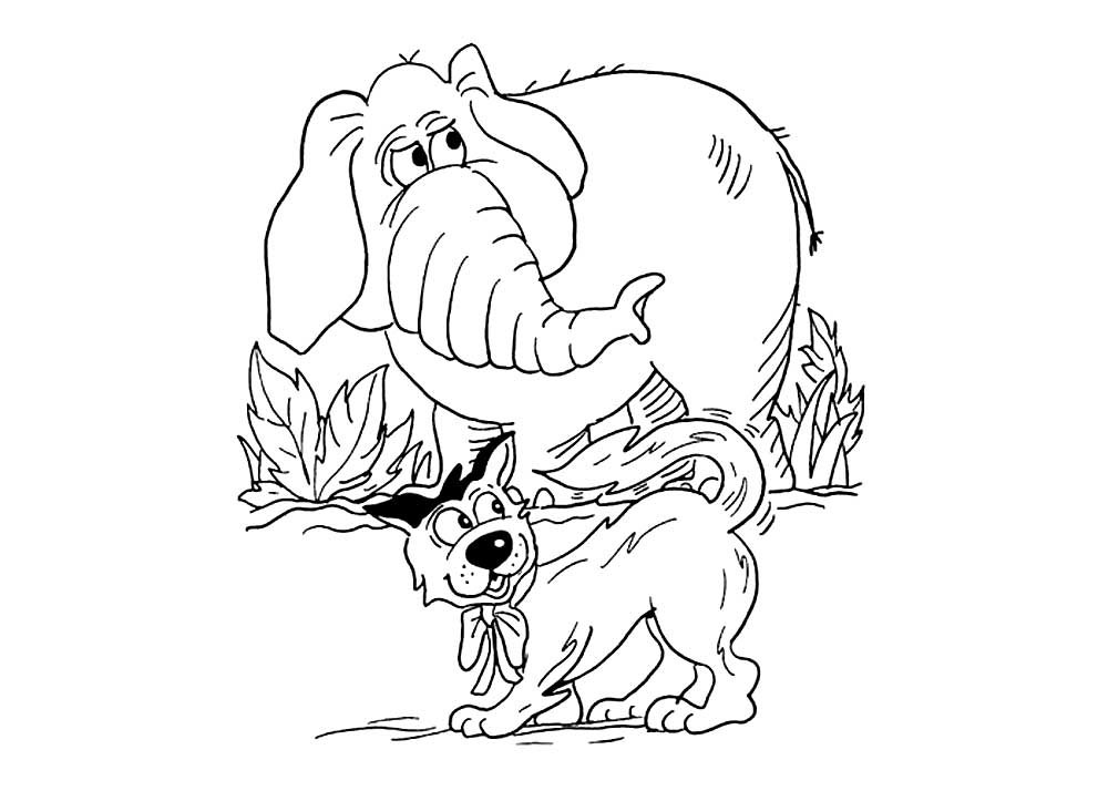 Слон и моська разукрашка