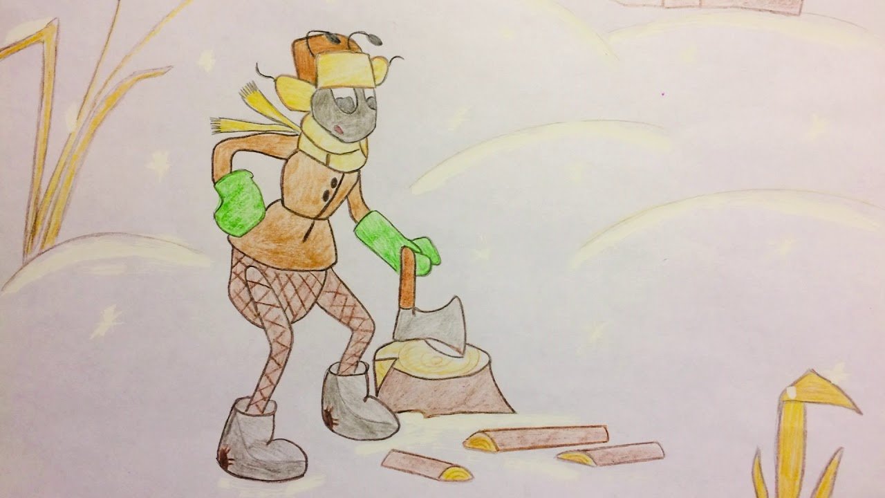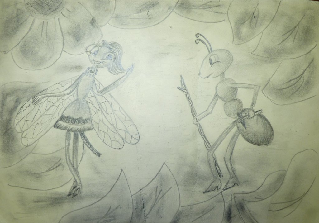 ![Стрекоза и муравей басня рисунок карандашом]()