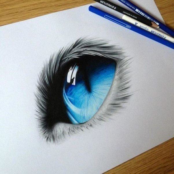 ![Глаза животных цветными карандашами]()