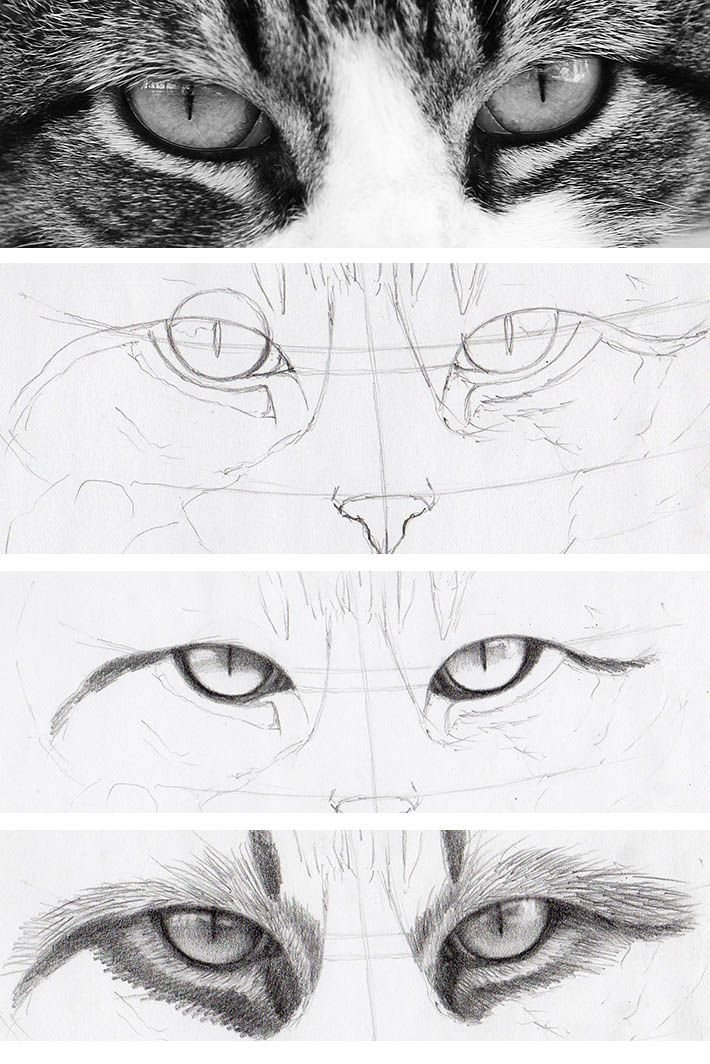 ![Кошачьи глаза простым карандашом]()