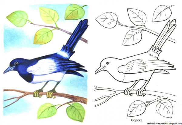 Рисунок сороки для раскрашивания