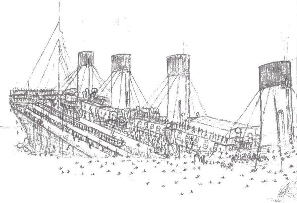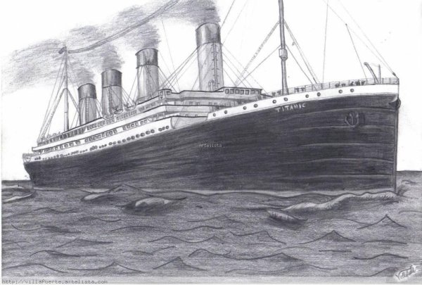 ![Рисунок Титаника цветными карандашами лёгкие]()