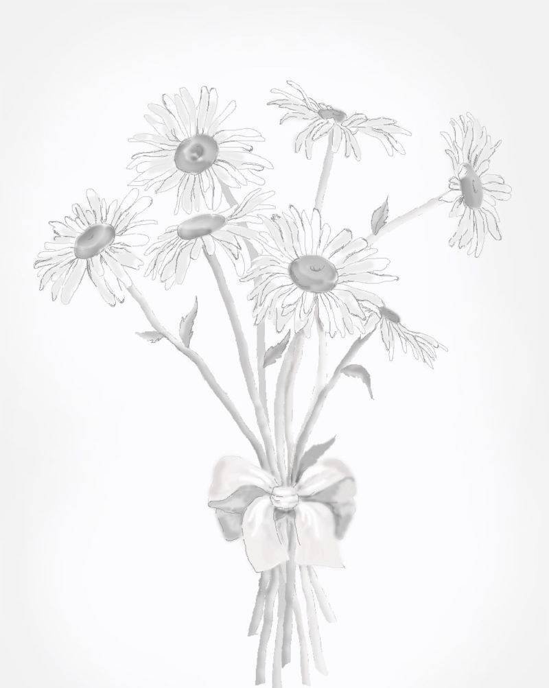 Букет ромашек - это великолепный и нежный подарок, который создан с использованием тонкого искусства рисования карандашом. Каждый цветок в этом букете выглядит так реалистично, что словно он только что был сорван сочных лугов. Рисунок карандашом придает особую глубину и текстуру каждому лепестку, а благодаря мастерскому использованию теней и перспективы, цветы просто оживают на бумаге. Букет ромашек, нарисованный с помощью карандаша, станет прекрасным украшением для вашего интерьера или замечательным подарком для близкого человека.