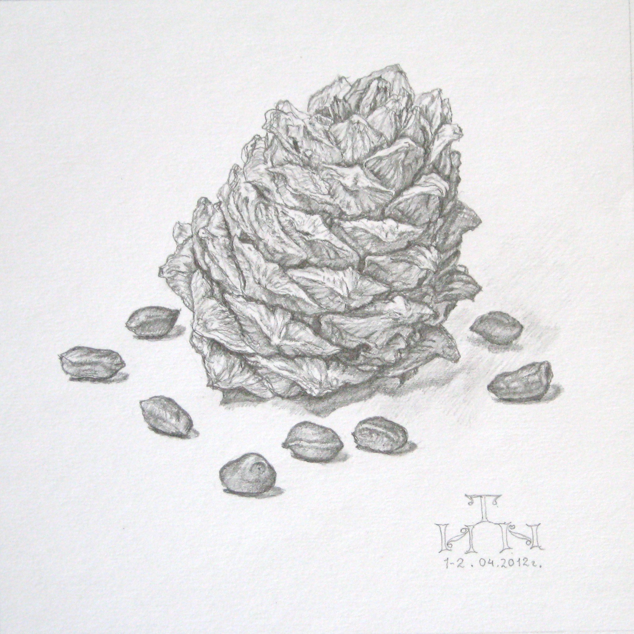 Кедровая шишка рисунок карандашом
