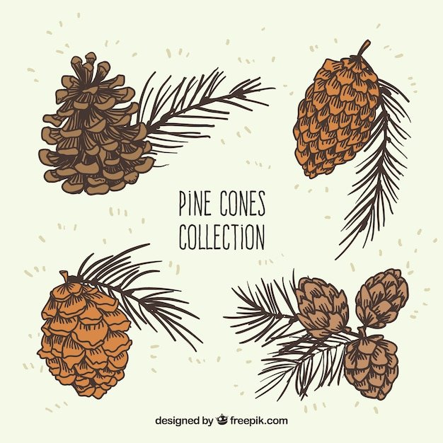 ![Веточка сосны с шишками иллюстрация]()