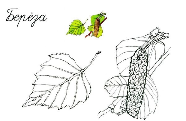 ![Береза повислая лист рисунок]()