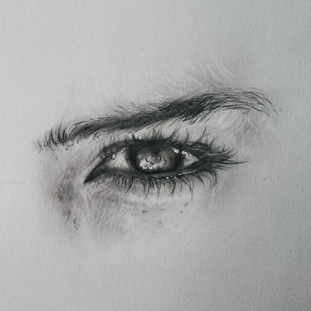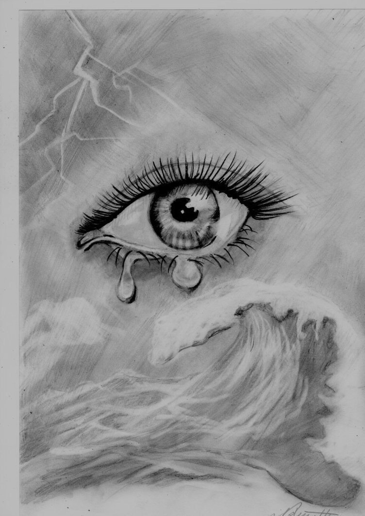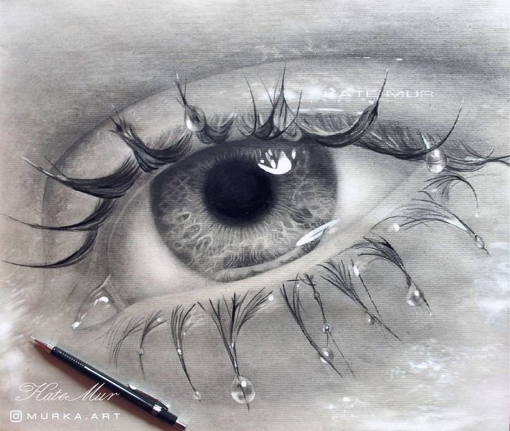 ![Глаз со слезой рисунок карандашом для срисовки]()
