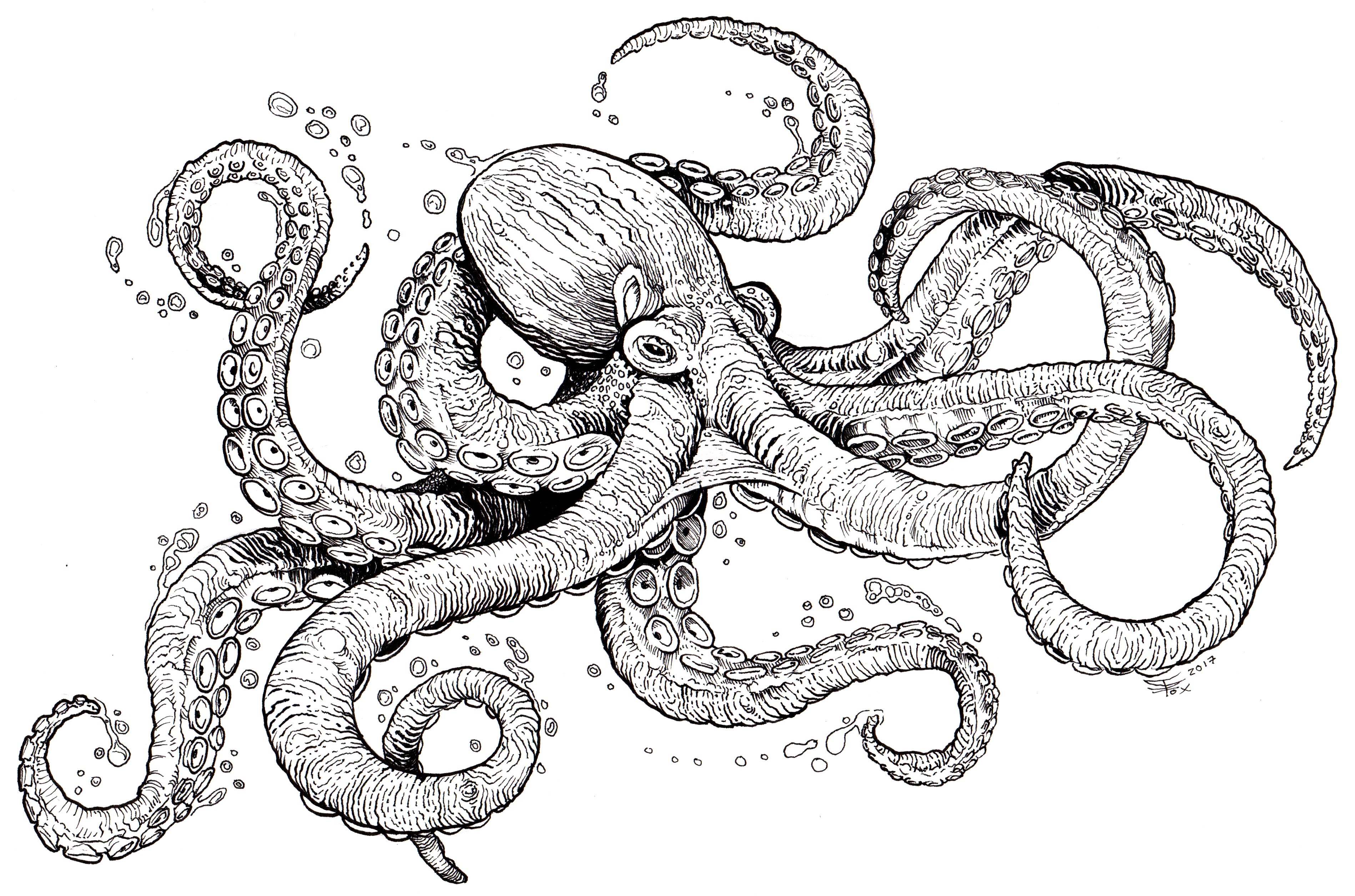Осьминог рисунок реалистичный