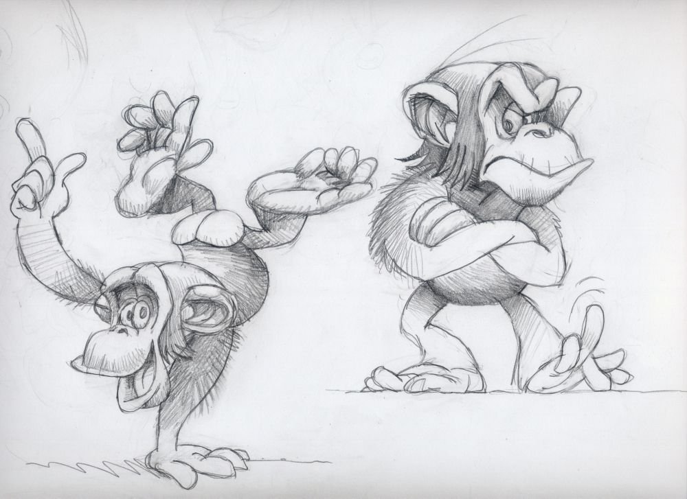 ![Зарисовки обезьян]()