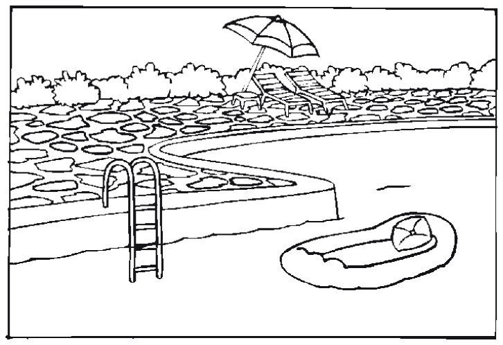![Раскраска двор с бассейном]()