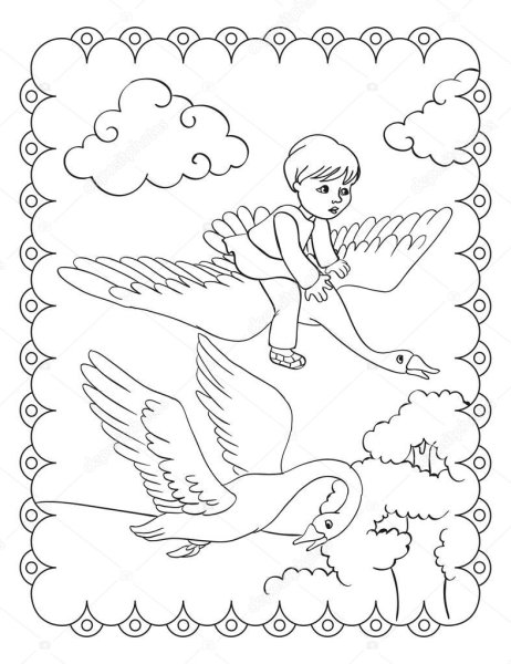 ![Чудесное путешествие Нильса с дикими гусями раскраска]()