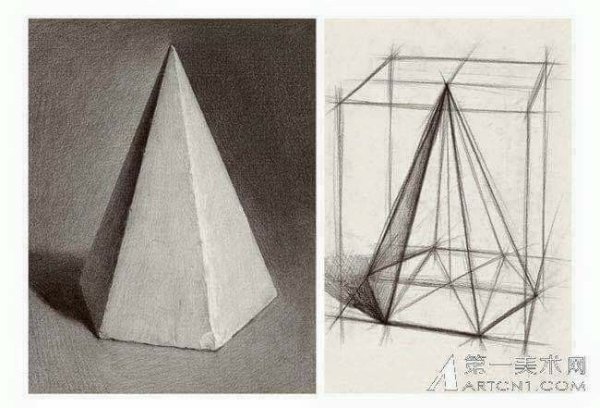 ![Конструктивный рисунок четырехгранной пирамиды]()