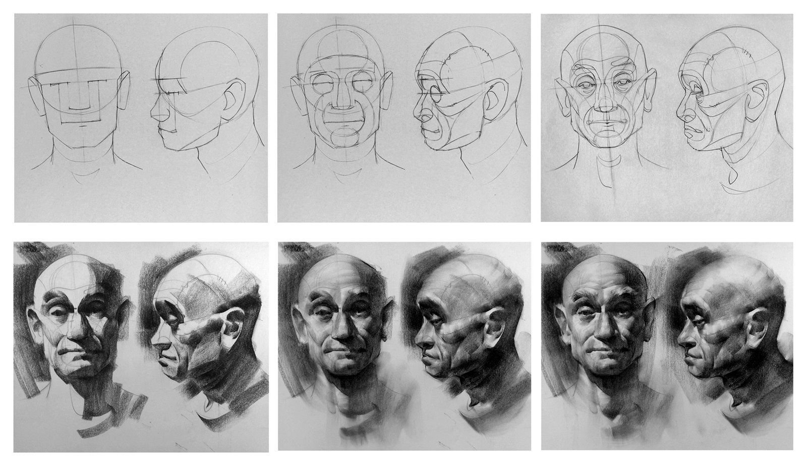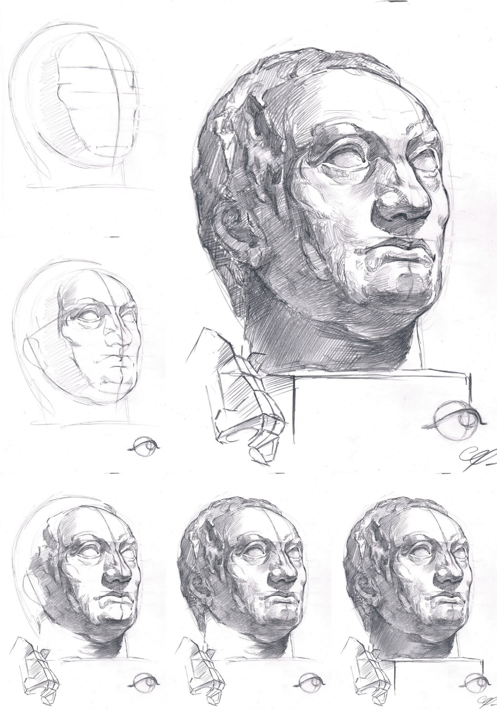 ![Зарисовки головы человека в разных ракурсах]()