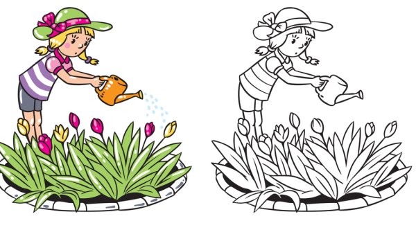 Клумба с цветами раскраска